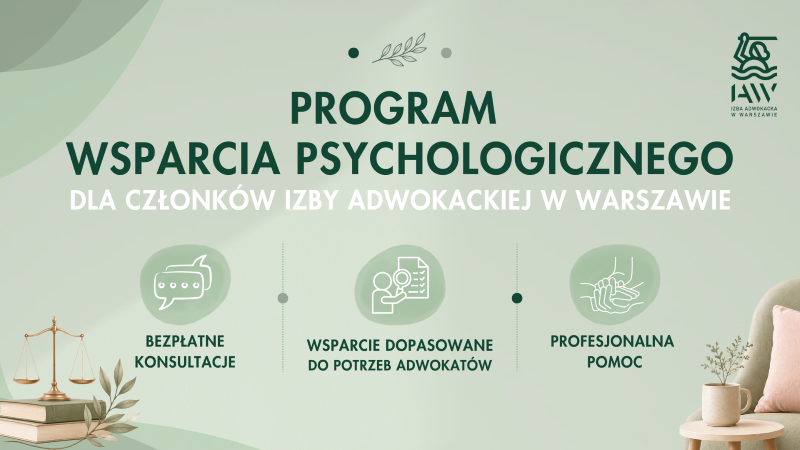 Okręgowa Rada Adwokacka w Warszawie uruchamia program wsparcia psychologicznego dla członków i członkiń Izby Adwokackiej w Warszawie, który będzie realizowany od 22 kwietnia 2026 r. To już...