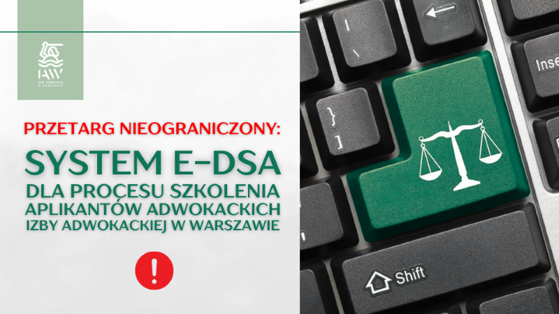 Okręgowa Rada Adwokacka w Warszawie na podstawie uchwały z dnia 1 kwietnia 2026 r. i 20 kwietnia 2026 r. informuje o ogłoszeniu przetargu nieograniczonego, którego przedmiotem jest...