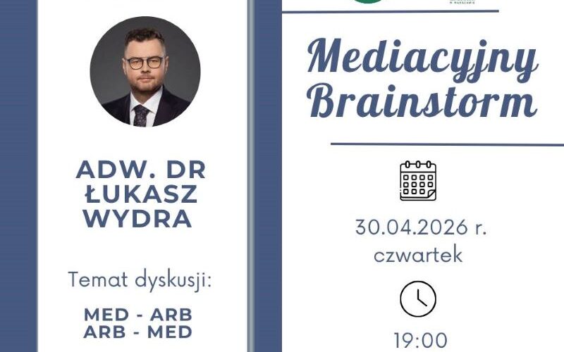 W imieniu Centrum Mediacji Izby Adwokackiej w Warszawie serdecznie zapraszamy na kolejne spotkanie w ramach comiesięcznego wydarzenia „Mediacyjny BRAINSTORM”, które odbędzie się 30 kwietnia o...
