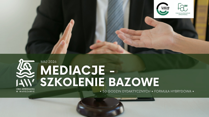 Fundacja Adwokatury Warszawskiej we współpracy z Centrum Mediacji Izby Adwokackiej w Warszawie serdecznie zapraszają do udziału w szkoleniu bazowym mediatorów.