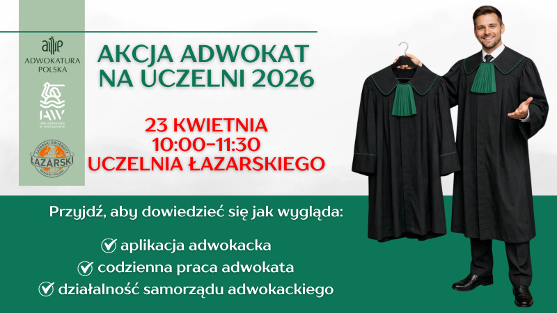Okręgowa Rada Adwokacka w Warszawie serdecznie zaprasza studentów Uczelni Łazarskiego w Warszawie do udziału w spotkaniu organizowanym w ramach IV edycji ogólnopolskiej akcji Naczelnej Rady...