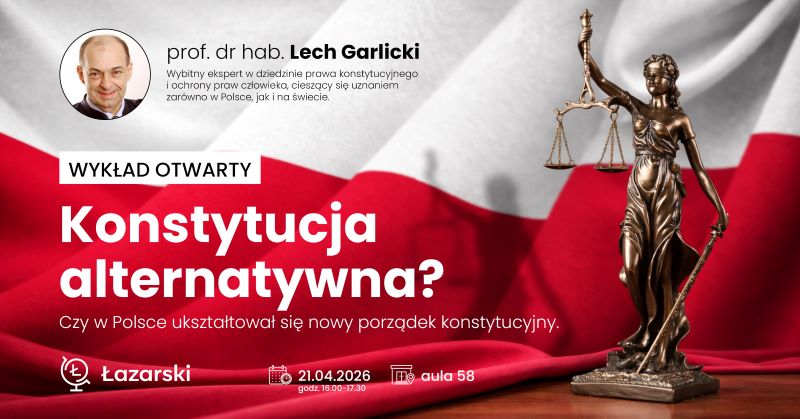 Uczelnia Łazarskiego oraz Dziekan Wydziału Prawa i Administracji, prof. UŁa dr hab. Eligiusz Krześniak, zapraszają na wykład otwarty pt. „Konstytucja alternatywna Czy w Polsce ukształtował...